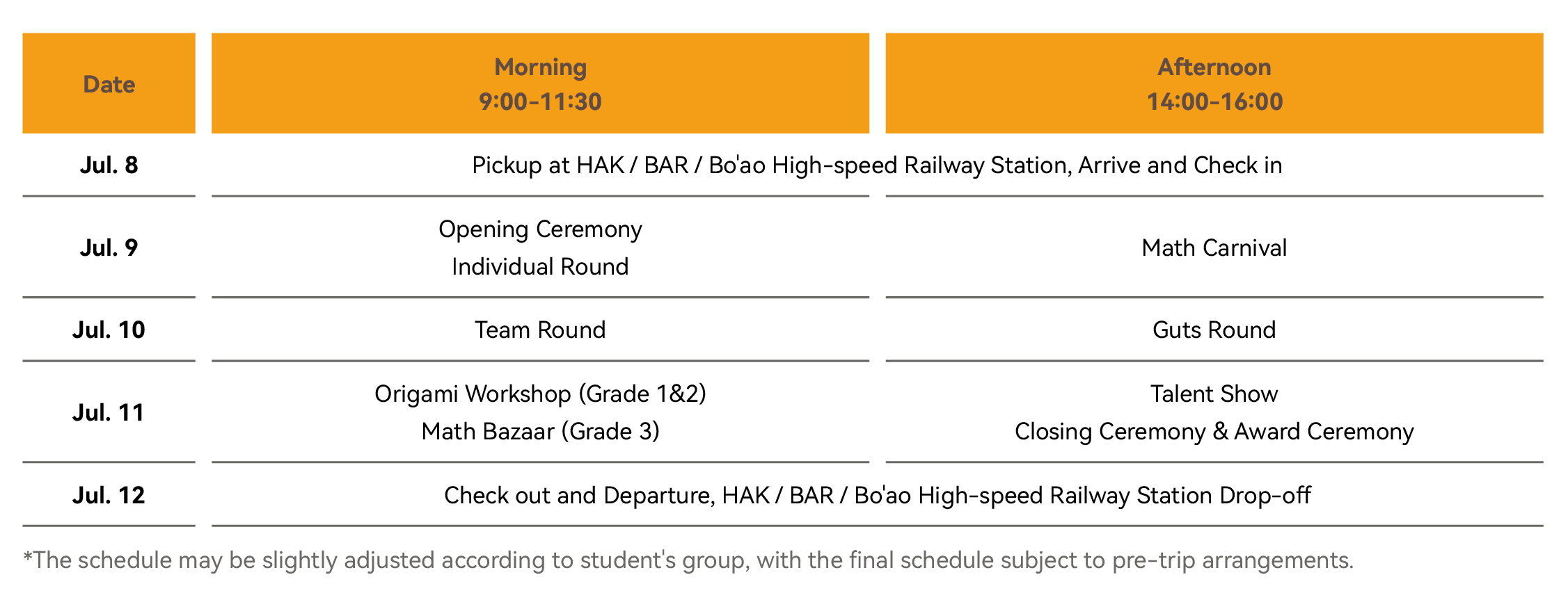 Grade 4-8: 15th-20th July, 2026 (6days) -